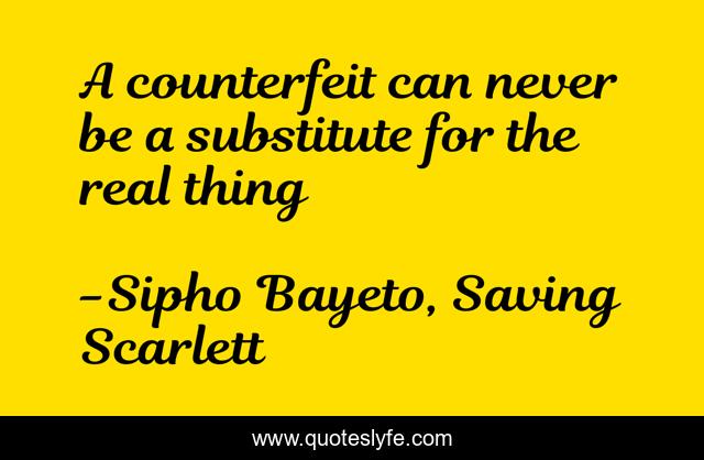 "Sipho Bayeto, Saving Scarlett Quotes." Quoteslyfe.com, 2025. Fri. 05 Dec. 2025. <https://www.quoteslyfe.com/quote/A-counterfeit-can-never-be-a-substitute-91357>.
