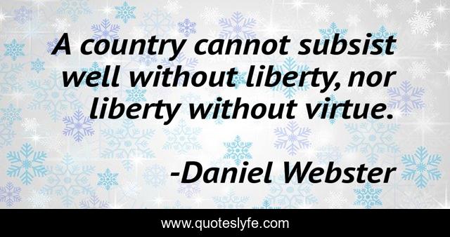 This page presents the quote "A country cannot subsist well without liberty, nor liberty without virtue.". Author of this quote is Daniel Webster. .