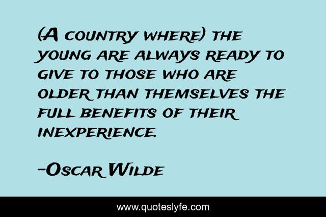 This page presents the quote "(A country where) the young are always ready to give to those who are older than themselves the full benefits of their inexperience.". Author of this quote is Oscar Wilde. This quote is about america, americans,.