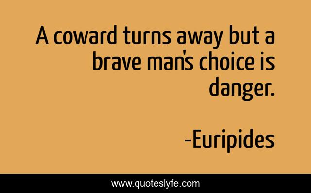 This page presents the quote "A coward turns away but a brave man's choice is danger.". Author of this quote is Euripides. .