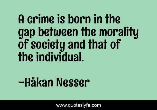 This page presents the quote "A crime is born in the gap between the morality of society and that of the individual.". Author of this quote is Håkan Nesser. This quote is about crime, social-norms, morality,.