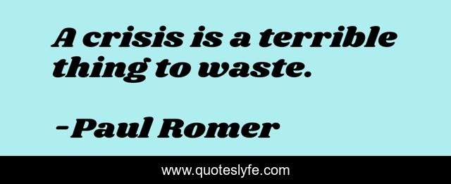 "Paul Romer Quotes." Quoteslyfe.com, 2025. Fri. 05 Dec. 2025. <https://www.quoteslyfe.com/quote/A-crisis-is-a-terrible-thing-to-103798>.