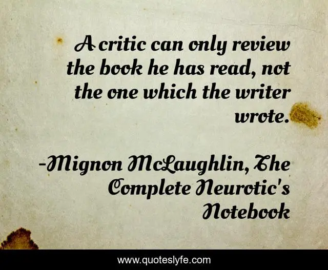 This page presents the quote "A critic can only review the book he has read, not the one which the writer wrote.". Author of this quote is Mignon McLaughlin, The Complete Neurotic's Notebook. .