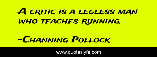 This page presents the quote "A critic is a legless man who teaches running.". Author of this quote is Channing Pollock. This quote is about critics, criticism,.