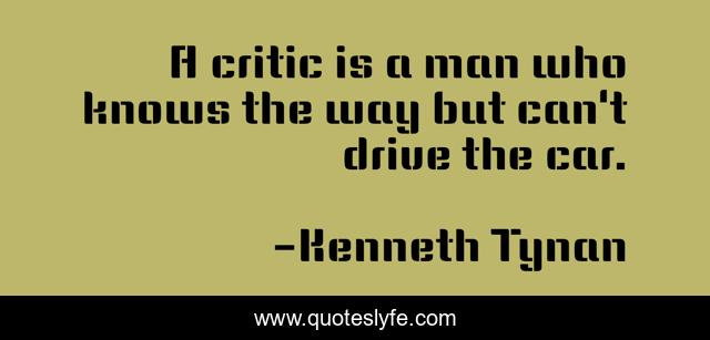 This page presents the quote "A critic is a man who knows the way but can't drive the car.". Author of this quote is Kenneth Tynan. This quote is about critics, criticism,.