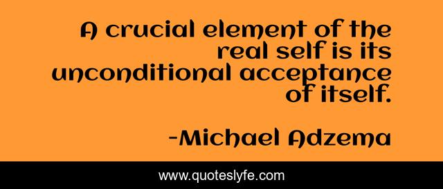 This page presents the quote "A crucial element of the real self is its unconditional acceptance of itself.". Author of this quote is Michael Adzema. This quote is about self, acceptance, borderline-personality-disorder, psychology,.