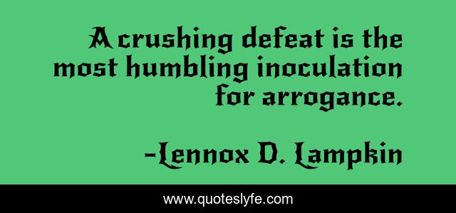 This page presents the quote "A crushing defeat is the most humbling inoculation for arrogance.". Author of this quote is Lennox D. Lampkin. This quote is about defeat-and-attitude, dictator, arrogance,.