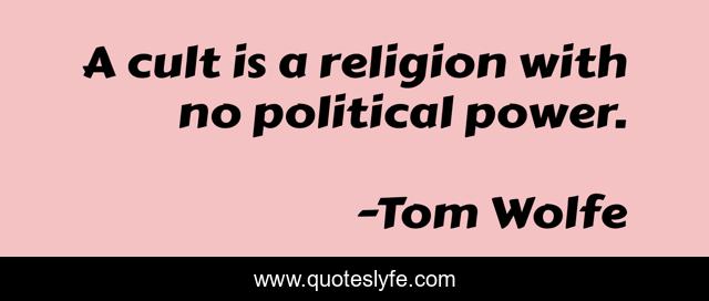 This page presents the quote "A cult is a religion with no political power.". Author of this quote is Tom Wolfe. This quote is about atheism, philosophy,.