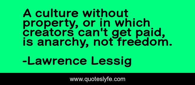 This page presents the quote "A culture without property, or in which creators can't get paid, is anarchy, not freedom.". Author of this quote is Lawrence Lessig. This quote is about culture, property, anarchy,.