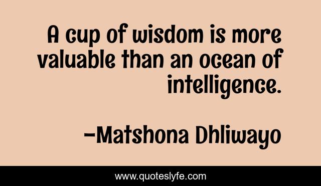 "Matshona Dhliwayo Quotes." Quoteslyfe.com, 2025. Fri. 05 Dec. 2025. <https://www.quoteslyfe.com/quote/A-cup-of-wisdom-is-more-valuable-98436>.