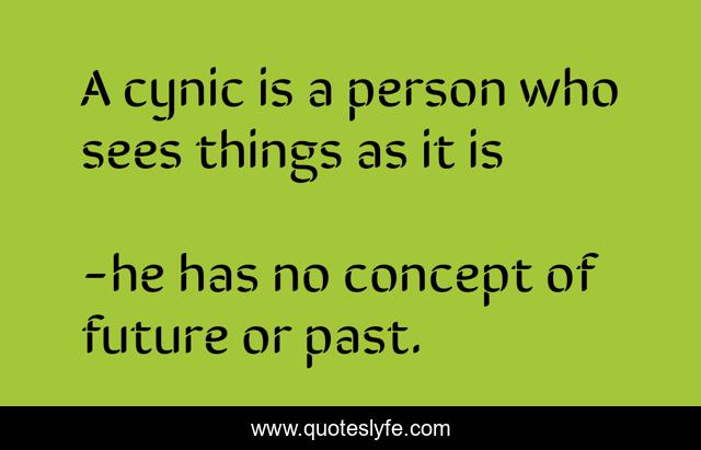 This page presents the quote "A cynic is a person who sees things as it is". Author of this quote is he has no concept of future or past.. .