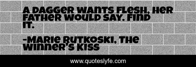 This page presents the quote "A dagger wants flesh, her father would say. Find it.". Author of this quote is Marie Rutkoski, The Winner's Kiss. This quote is about dagger, flesh, fight, kestrel, general-trajan, war,.
