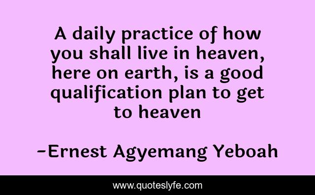 A daily practice of how you shall live in heaven, here on earth, is a good qualification plan to get to heaven