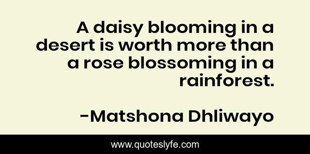 "Matshona Dhliwayo Quotes." Quoteslyfe.com, 2025. Mon. 08 Dec. 2025. <https://www.quoteslyfe.com/quote/A-daisy-blooming-in-a-desert-is-58304>.