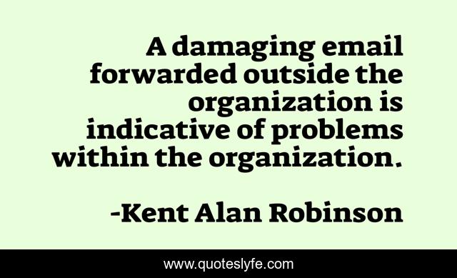 This page presents the quote "A damaging email forwarded outside the organization is indicative of problems within the organization.". Author of this quote is Kent Alan Robinson. This quote is about leadership-development, management, business, human-resources-management, management-training, human-resources, management-and-leadership, leadership, self-help,.