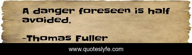 This page presents the quote "A danger foreseen is half avoided.". Author of this quote is Thomas Fuller. This quote is about ways, fear, overcome,.
