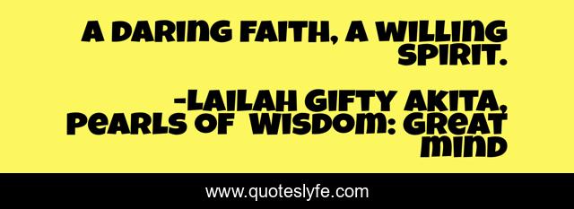 "Lailah Gifty Akita, Pearls of Wisdom: Great mind Quotes." Quoteslyfe.com, 2025. Sun. 07 Dec. 2025. <https://www.quoteslyfe.com/quote/A-daring-faith-a-willing-spirit-85310>.