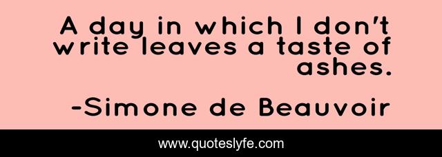 This page presents the quote "A day in which I don't write leaves a taste of ashes.". Author of this quote is Simone de Beauvoir. .