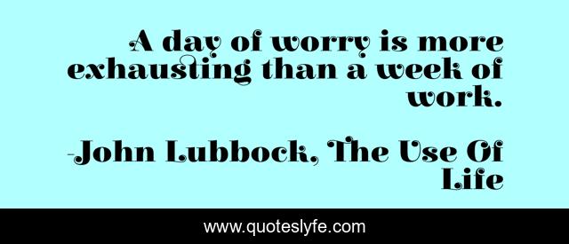 "John Lubbock, The Use Of Life Quotes." Quoteslyfe.com, 2025. Fri. 05 Dec. 2025. <https://www.quoteslyfe.com/quote/A-day-of-worry-is-more-exhausting-147337>.