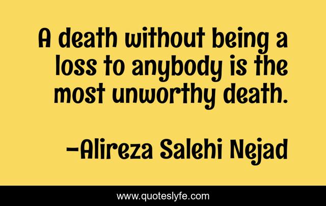 This page presents the quote "A death without being a loss to anybody is the most unworthy death.". Author of this quote is Alireza Salehi Nejad. This quote is about living, death, love, death-and-dying, affection,.