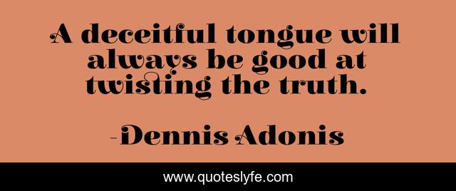 This page presents the quote "A deceitful tongue will always be good at twisting the truth.". Author of this quote is Dennis Adonis. This quote is about deceit, deceitful-people, lies, rumours, untruthful,.