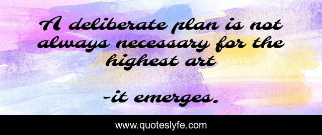 This page presents the quote "A deliberate plan is not always necessary for the highest art". Author of this quote is it emerges.. .