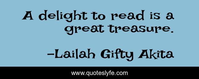 This page presents the quote "A delight to read is a great treasure.". Author of this quote is Lailah Gifty Akita. This quote is about books, education, reading,.