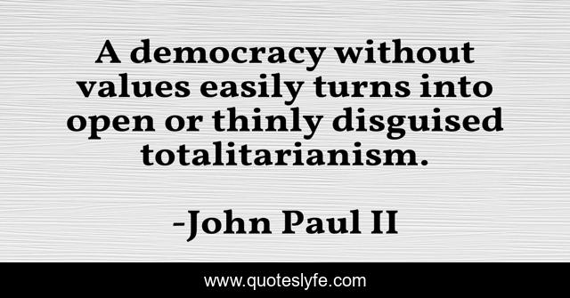 This page presents the quote "A democracy without values easily turns into open or thinly disguised totalitarianism.". Author of this quote is John Paul II. This quote is about totalitarianism, values, democracy,.
