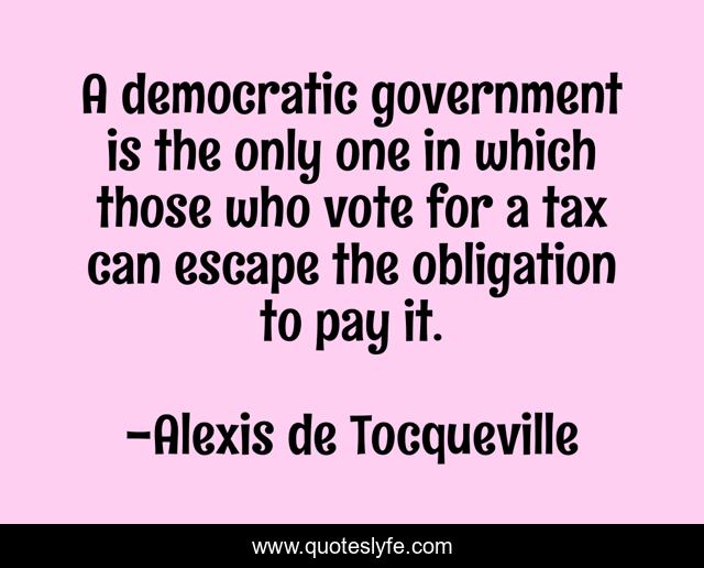 This page presents the quote "A democratic government is the only one in which those who vote for a tax can escape the obligation to pay it.". Author of this quote is Alexis de Tocqueville. This quote is about vote, tax, escape,.