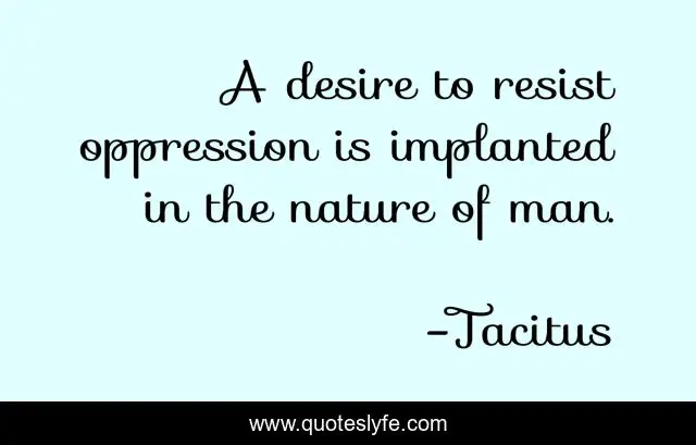 "Tacitus Quotes." Quoteslyfe.com, 2025. Sun. 07 Dec. 2025. <https://www.quoteslyfe.com/quote/A-desire-to-resist-oppression-is-implanted-292421>.