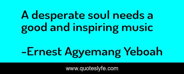 This page presents the quote "A desperate soul needs a good and inspiring music". Author of this quote is Ernest Agyemang Yeboah. This quote is about anxiety, desperation, when-things-go-wrong, despair, music, bad-mood,.