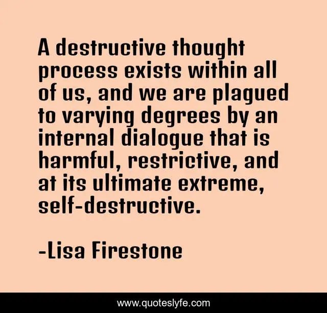 "Lisa Firestone Quotes." Quoteslyfe.com, 2025. Fri. 05 Dec. 2025. <https://www.quoteslyfe.com/quote/A-destructive-thought-process-exists-within-all-138176>.