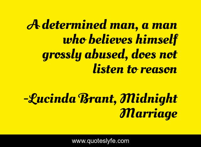 This page presents the quote "A determined man, a man who believes himself grossly abused, does not listen to reason". Author of this quote is Lucinda Brant, Midnight Marriage. This quote is about reason, determined, listen,.