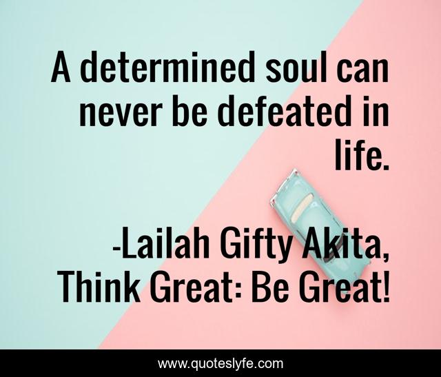 "Lailah Gifty Akita, Think Great: Be Great! Quotes." Quoteslyfe.com, 2025. Fri. 05 Dec. 2025. <https://www.quoteslyfe.com/quote/A-determined-soul-can-never-be-defeated-224567>.