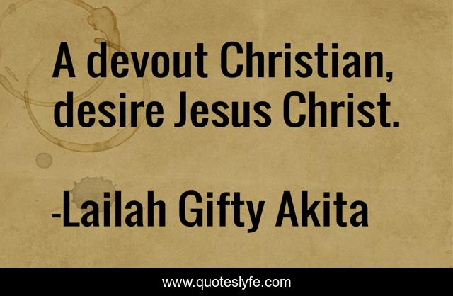 This page presents the quote "A devout Christian, desire Jesus Christ.". Author of this quote is Lailah Gifty Akita. This quote is about jesus-christ, religion, christian, devout, christianity,.