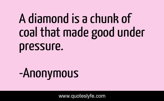 This page presents the quote "A diamond is a chunk of coal that made good under pressure.". Author of this quote is Anonymous. .
