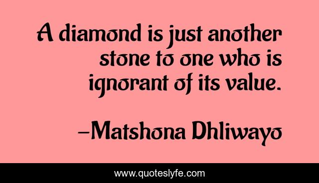 "Matshona Dhliwayo Quotes." Quoteslyfe.com, 2025. Fri. 05 Dec. 2025. <https://www.quoteslyfe.com/quote/A-diamond-is-just-another-stone-to-232856>.