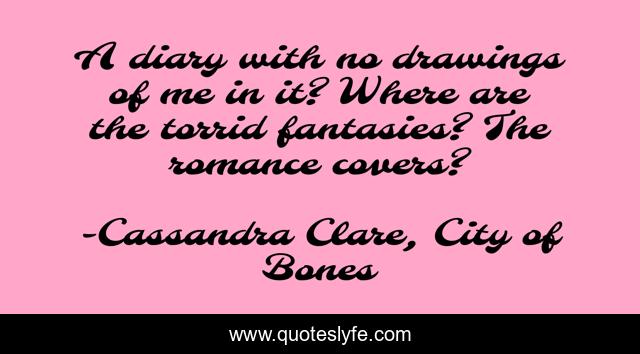 This page presents the quote "A diary with no drawings of me in it? Where are the torrid fantasies? The romance covers?". Author of this quote is Cassandra Clare, City of Bones. This quote is about diary, clary-fray, humor, jace-wayland, sarcasm,.