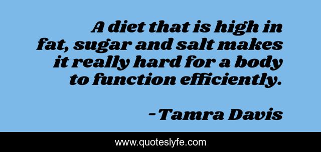 This page presents the quote "A diet that is high in fat, sugar and salt makes it really hard for a body to function efficiently.". Author of this quote is Tamra Davis. This quote is about body, fat, sugar,.