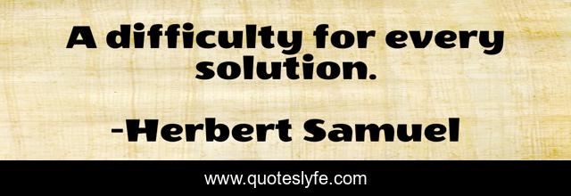 This page presents the quote "A difficulty for every solution.". Author of this quote is Herbert Samuel. This quote is about rule, government,.