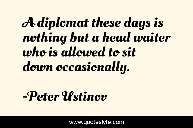 This page presents the quote "A diplomat these days is nothing but a head waiter who is allowed to sit down occasionally.". Author of this quote is Peter Ustinov. This quote is about quips, comments,.
