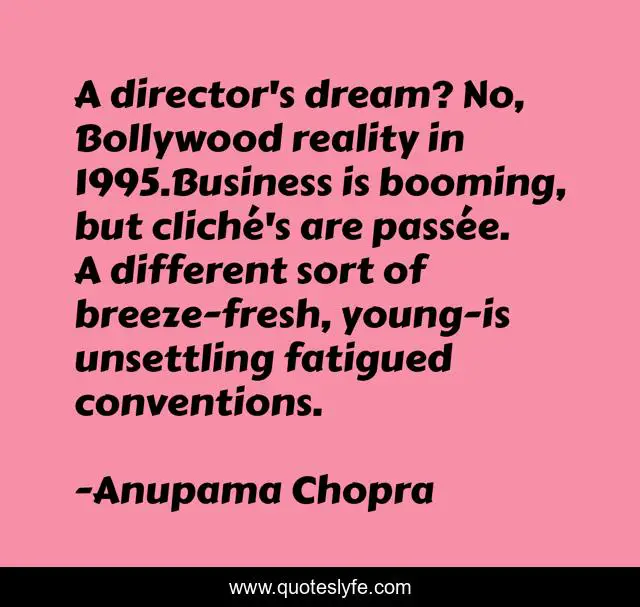 "Anupama Chopra Quotes." Quoteslyfe.com, 2025. Mon. 08 Dec. 2025. <https://www.quoteslyfe.com/quote/A-director-s-dream-No-Bollywood-reality-194628>.