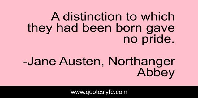 This page presents the quote "A distinction to which they had been born gave no pride.". Author of this quote is Jane Austen, Northanger Abbey. This quote is about distinction, pride, talent,.