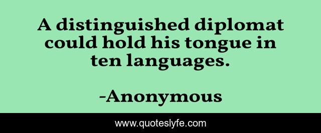 This page presents the quote "A distinguished diplomat could hold his tongue in ten languages.". Author of this quote is Anonymous. This quote is about tact, diplomacy,.