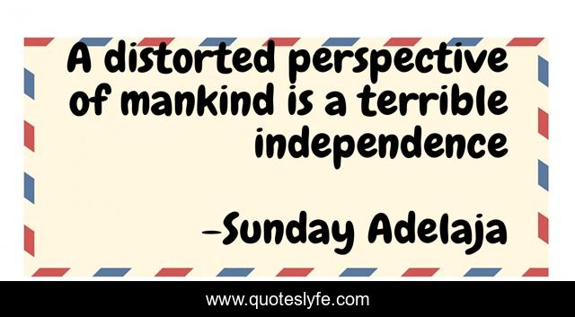 This page presents the quote "A distorted perspective of mankind is a terrible independence". Author of this quote is Sunday Adelaja. This quote is about mankind, distorted, perspective, independence, terrible,.