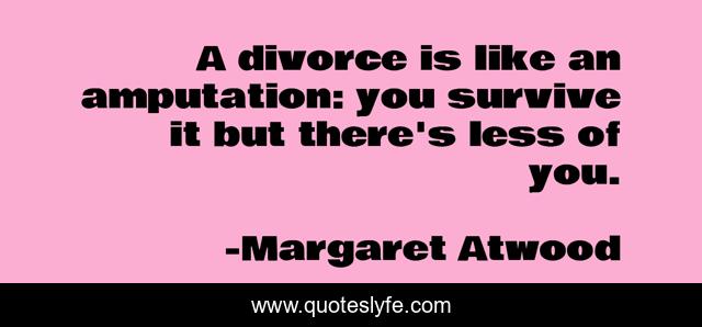 "Margaret Atwood Quotes." Quoteslyfe.com, 2025. Fri. 05 Dec. 2025. <https://www.quoteslyfe.com/quote/A-divorce-is-like-an-amputation-you-267859>.