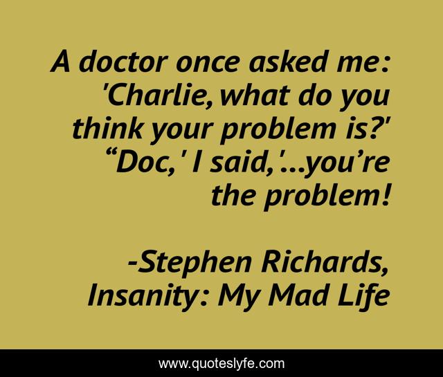"Stephen Richards, Insanity: My Mad Life Quotes." Quoteslyfe.com, 2025. Fri. 05 Dec. 2025. <https://www.quoteslyfe.com/quote/A-doctor-once-asked-me-Charlie-what-221028>.