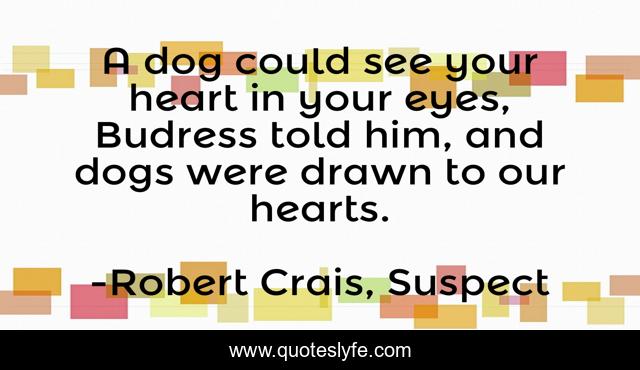 This page presents the quote "A dog could see your heart in your eyes, Budress told him, and dogs were drawn to our hearts.". Author of this quote is Robert Crais, Suspect. .