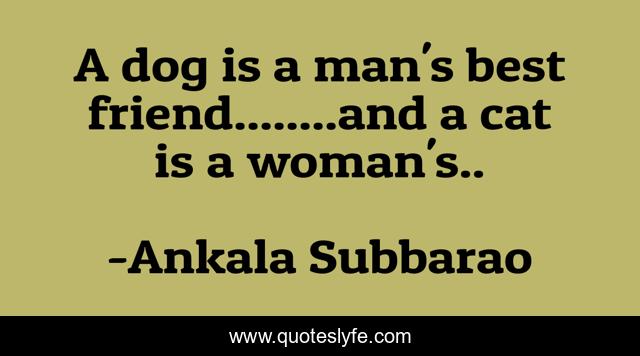 This page presents the quote "A dog is a man's best friend........and a cat is a woman's..". Author of this quote is Ankala Subbarao. This quote is about woman, dog, cat,.