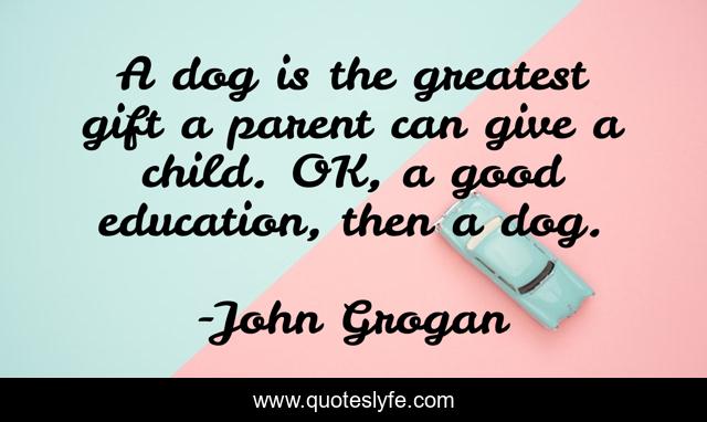 This page presents the quote "A dog is the greatest gift a parent can give a child. OK, a good education, then a dog.". Author of this quote is John Grogan. This quote is about good, dog, child,.